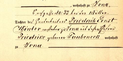 Auskünfte aus den nachfolgenden Jahrgängen der Geburten- , Heirats- bzw. Sterbebücher des Standessamtes Jena können nur beim Standesamt Jena angefordert werden.